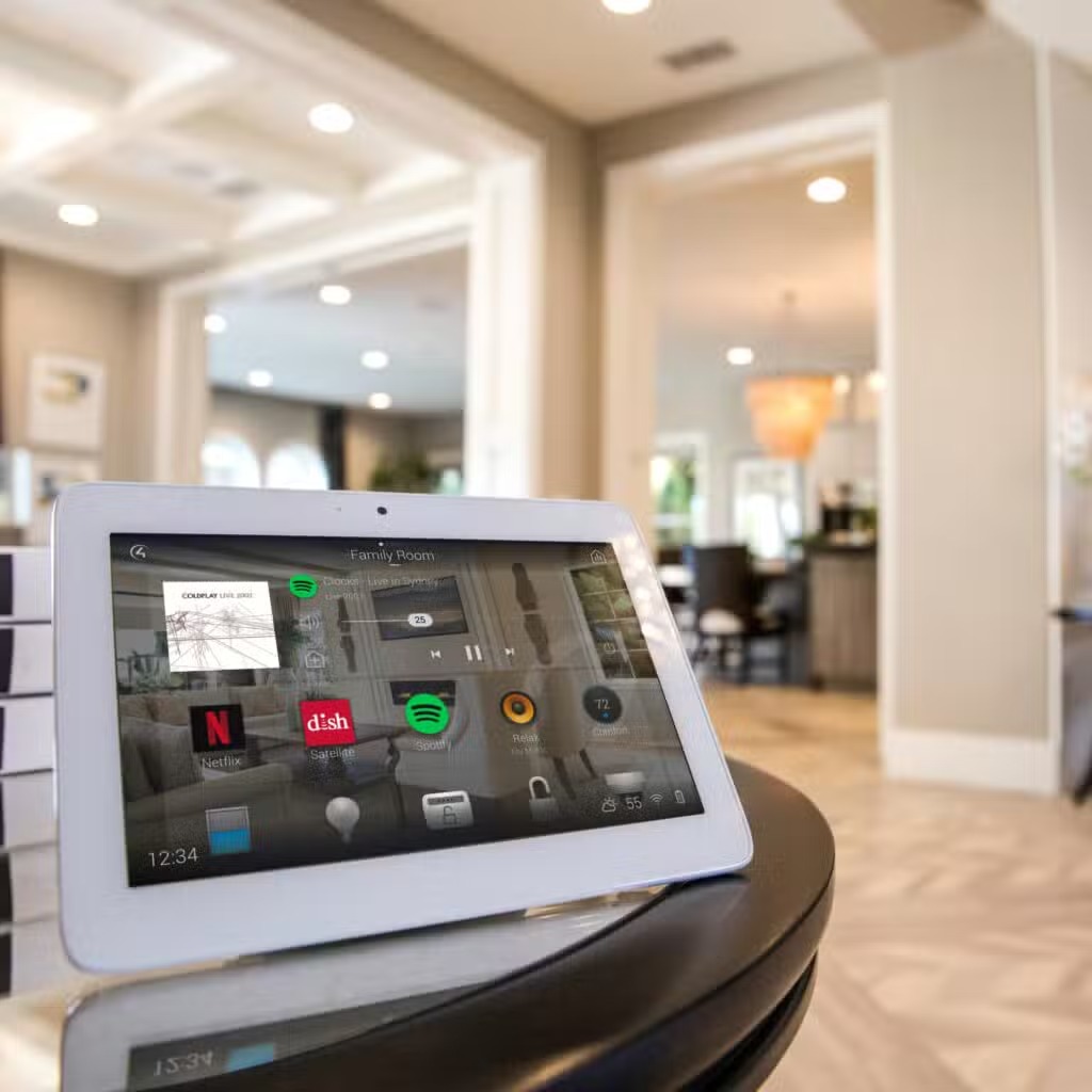 We have custom designer keypads to replace traditional light switches. Providing stunning interfaces that combine flexible button configurations with beautiful colors and finishes that complement the decor of your home. The color of the LEDs on your keypads are also customizable and provide instant visual feedback about what lights are currently on, whether your front door is locked, or even if the garage has been left open.