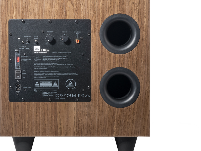 With a 250W RMS built in amplifier driving the 10-inch (250mm) down firing woofer, the L10cs is sure to provide plenty of low frequency support to a wide variety of audio systems. From 2 channel loudspeakers and Integrated music systems to home theater, the L10cs adds depth to music, and impact to movies and video games. Available in Natural and Black Walnut, the L10cs complements a wide variety of JBL loudspeakers and seamlessly blends with your décor.
