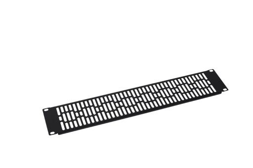 The SANUS Component Series CAVBP2 2U steel vented blanking panel maintains consistent airflow to prevent improper cooling or heating of AV components inside an AV rack. Sturdy and durable construction