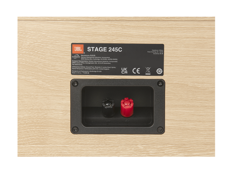Designed and engineered at our world-famous Acoustic Engineering Center of Excellence in Northridge, California, the Stage 245C is a center channel loudspeaker and is voiced to blend seamlessly with Stage 2 floorstanding mains, bookshelf mains, or even In-wall mains. This loudspeaker features a 2.5-way way design with Next Generation patented High-Definition Imaging (HDI™) waveguide geometry, 1-inch (25mm) Anodized Aluminum dome tweeter, and quad 4.5-inch (114mm) Polycellulose ribbed cone woofers that provides deep, signature JBL bass.