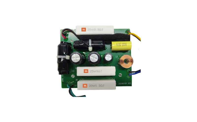 Premium components are used to construct the crossovers fitted to the Stage 2 line. The High frequency section features air core inductors and mylar capacitors that reduce distortion and improve sonic performance. The low frequency section includes laminate core inductors and electrolytic capacitors. These premium materials can handle more power and transmit energy faster elevating system performance.