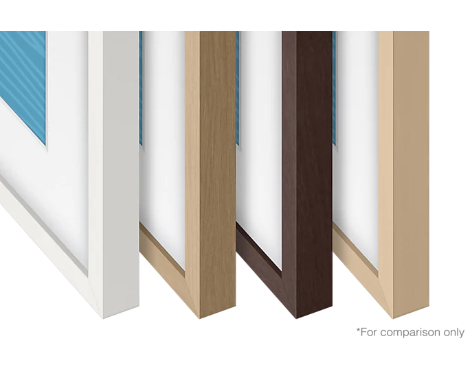 The Frame's bezel can be customized with 1 of 4 colour options consisting of White, Teak, Brown and Brick Red. These colour choices offer a tasteful contrast and subtly complement your room, a unique colour pattern or even a special occasion.