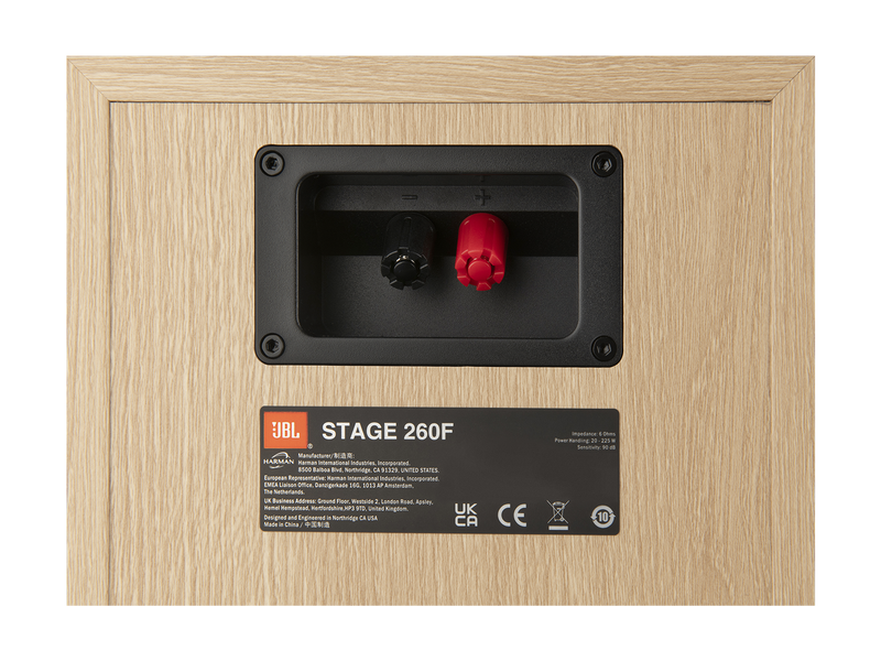 Designed and engineered at our world-famous Acoustic Engineering Center of Excellence in Northridge, California, the Stage 260F is the midsize floorstanding loudspeaker of the JBL Stage Series. This floorstanding loudspeaker features a 2.5-way design with Next Generation patented High-Definition Imaging (HDI™) waveguide geometry, 1-inch (25mm) Anodized Aluminum dome tweeter, and dual 6.5-inch (165mm) Polycellulose ribbed cone woofers that provide deep, signature JBL bass.