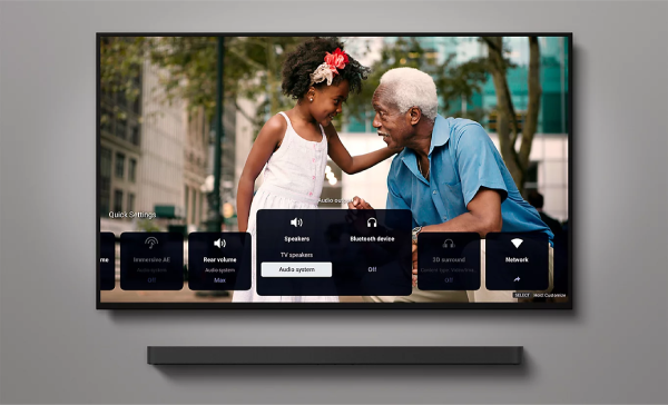 Easily control features such as sound field and volume using just the TV remote. With an integrated UI, soundbar sound settings automatically appear on the BRAVIA Quick Settings menu.