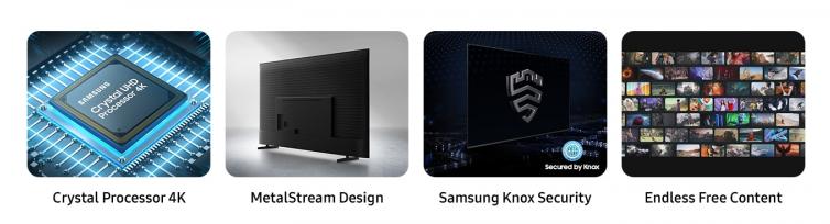 * Samsung Knox Security applies to Samsung TVs powered by Tizen®, launched since 2015. ** Latest software update is required.