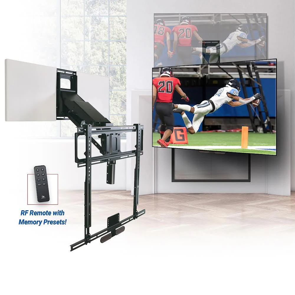 - AUTOMATIC DROP & SWIVEL: Patented, proprietary software and precision electronic actuators lowers and swivels the TV quickly and automatically through the use of 2 Memory presets on the remote control.