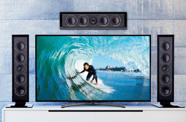 Ultra thin (1-3/4 in / 4.4 cm) including wall mount 3-driver, 2-way bass-reflex with dual passive radiators in ultra-thin on-wall with molded high-gloss polymer enclosure.