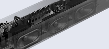 The built-in dual subwoofer and front speakers feature an X-Balanced Speaker Unit. The unique rectangular shape of these speakers maximizes the diaphragm area for more punchy bass. It also reduces driver excursion while maintaining sound pressure, resulting in less distortion and greater vocal clarity.
