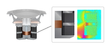 Sony’s proprietary technology, the Σ (Sigma) Magnetic Circuit enables deep, powerful bass by maximizing the magnetic force that drives the voice coil. By contrast, conventionally shaped circuits let much of this magnetic force leak away.
