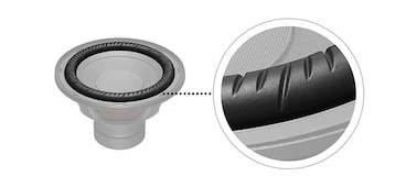 Another Sony proprietary technology, Separated Notch Edge improves vertical amplitude symmetry, an essential for clear sound quality. It achieves this using concentric cuts on the edge, which help to control the stress inside and outside the edge of the diaphragm.