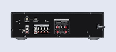 The STR-DH190’s A+B function lets you connect two sets of front speakers. You can easily switch between A or B or use both together to run outdoor speakers or set them up in a different room from the same amp.
