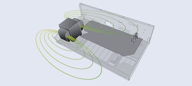 Rigid parts hold the heat sink in place, reducing transmitted vibration from speaker sound pressure.