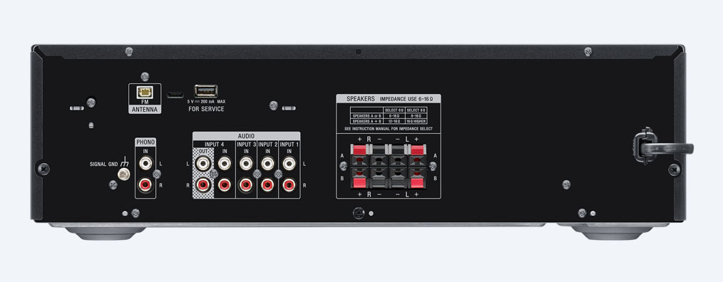 The STR-DH190 has four analog audio inputs and one output, for easy connection to your audio recording device and other audio equipment.