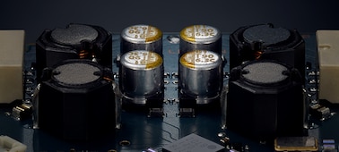Replacing the conventional laminated capacitor, winding inductors in the digital block power supply contribute to a pure sound.