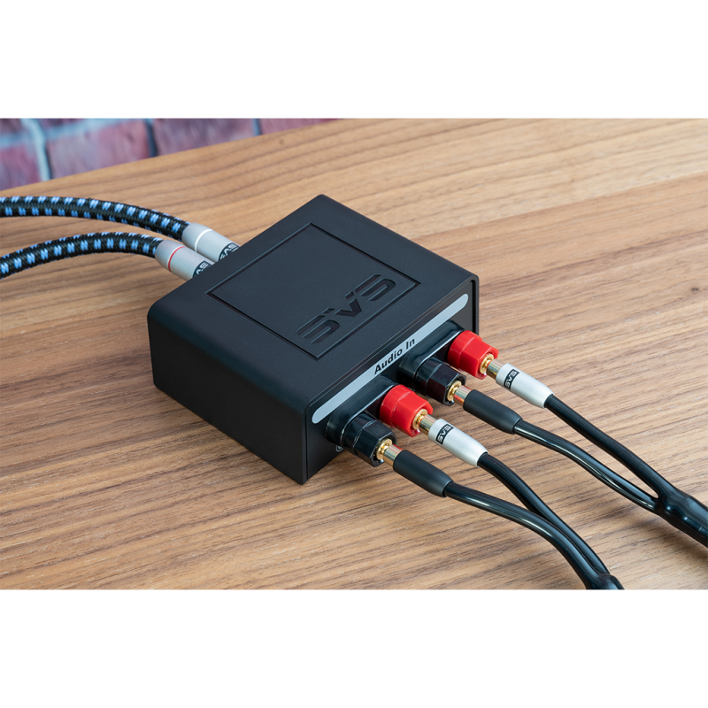 The SVS SoundPath Speaker Level Subwoofer Adapter elegantly solves this problem by stepping down the loudspeaker amplifier speaker-level voltage to RCA line-level voltage, allowing for a safe connection to a powered subwoofer with no loss of fidelity.
