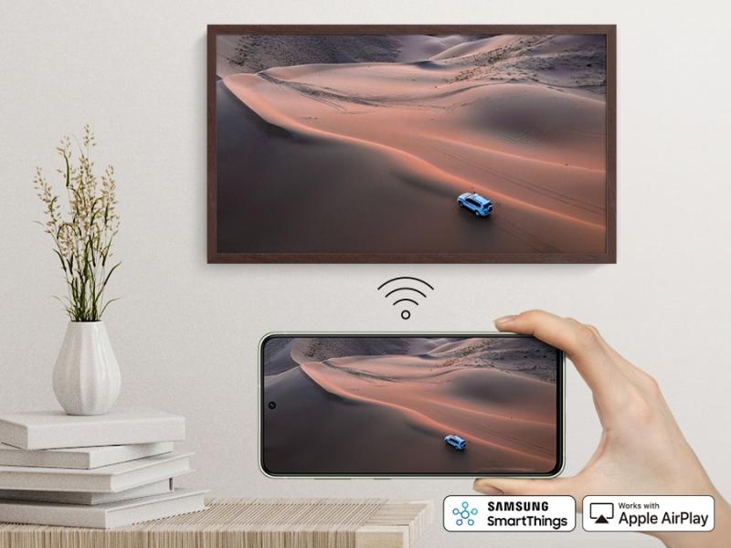 Easily go from watching your favourite show on your mobile device to a bigger screen like The Frame. Mirror content quickly from your smartphone or tablet with SmartThings*, or pair with your iOS devices with AirPlay 2