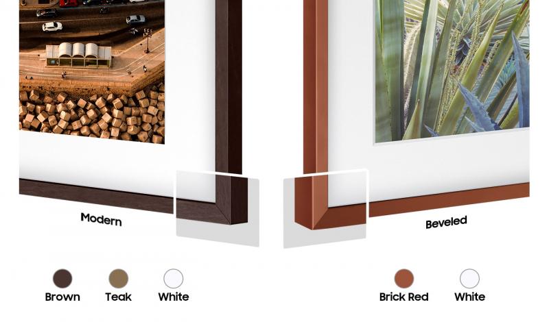 The Frame's bezel can be customized with 1 of 4 colour options consisting of White, Teak, Brown and Brick Red. These colour choices offer a tasteful contrast and subtly complement your room, a unique colour pattern or even a special occasion.