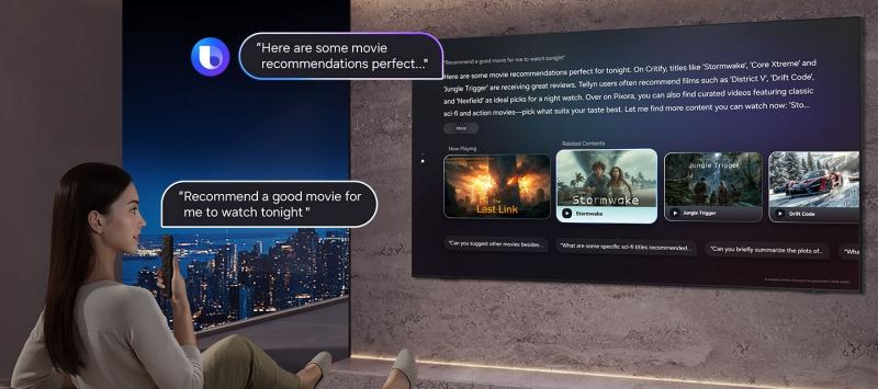 Getting help from an AI companion has never been more visualized and comprehensive with multiple AI agents—whether it’s questions about a scene now playing, recommending what to wear for trending clothing styles, or finding the perfect taco spot nearby. Responses come instantly with related video/image options to choose from, making your discovery richer and more personalized than any other AI assistant on a big screen.