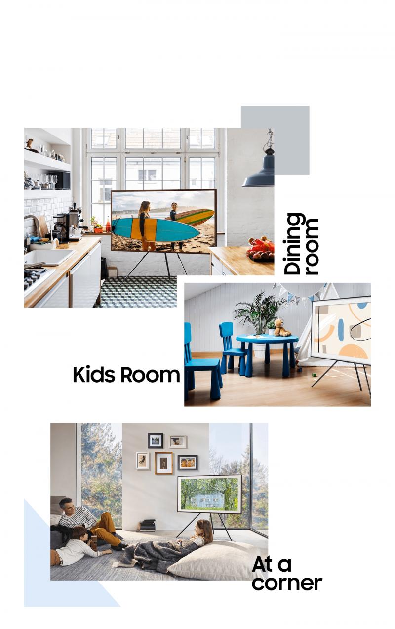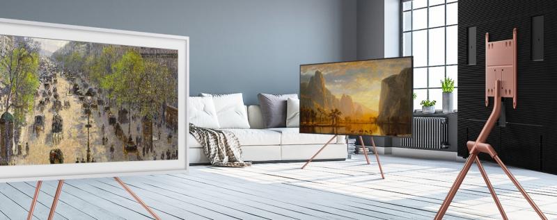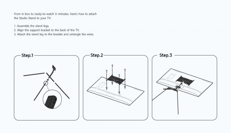 The Studio Stand works with a variety of Samsung TVs - designed specifically for the 50~ 65"" Q-Series, Crystal UHDs and The Frame.