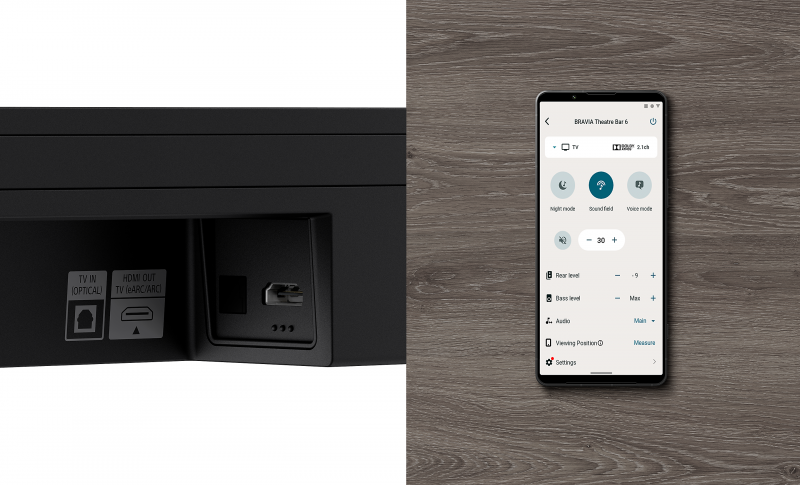 BRAVIA Theatre Bar 6 makes surround sound simple. Everything from setup to control is easily done with your smartphone. The app guides you step by step, leaving you ready to enjoy true cinematic immersion.