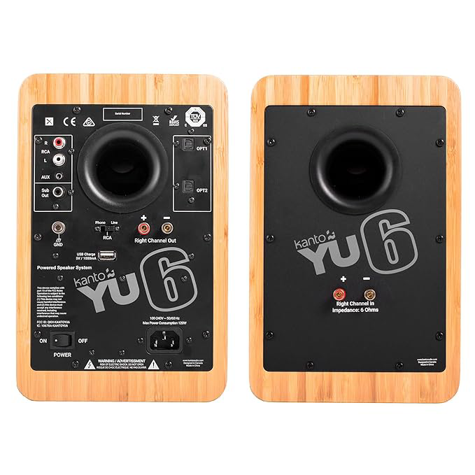 Kanto 2 Way Powered Bookshelf Speaker with Bluetooth and Phono Preamp - YU6BAMBOO