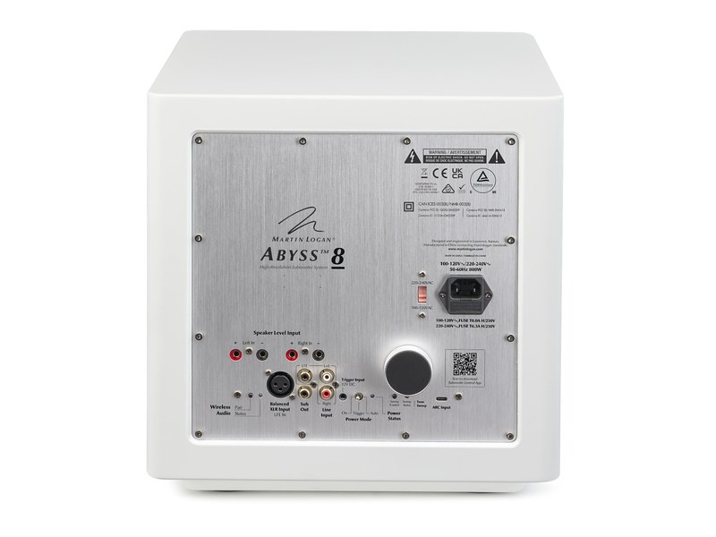 Abyss 8 is one of the smallest, most compact subwoofers that MartinLogan has ever built, but don’t let its small footprint fool you, it is capable of bass completely unexpected from its ultra-compact size. The key to its deceptively strong, yet detailed sound is its Hybrid Woofer System which utilizes a pair of 8” passive radiators to bolster its active 8” woofer. This woofer system is driven by powerful amplification, and a precision DSP engine, all contained inside a beautiful, yet robust, 1” thick cabinet. To complement the impressive power and musicality of Abyss 8, MartinLogan engineers included an array of connectivity options ranging from XLR to the built-in wireless option. Abyss 8 also features MartinLogan’s powerful and intuitive control app for convenient setup and adjustment, as well as being compatible with the award-winning Anthem Room Correction (ARC®) system.