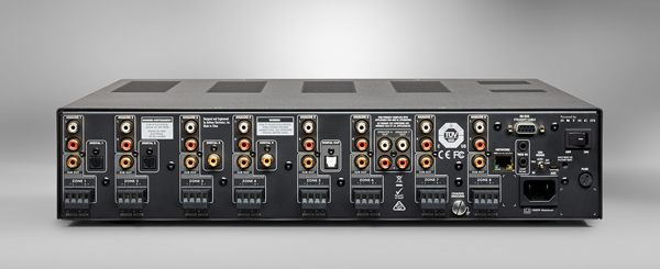 - Separate zone-specific bass management and subwoofer integration via a passive (RCA) or active (powered by another zone in bridge mode) connection.