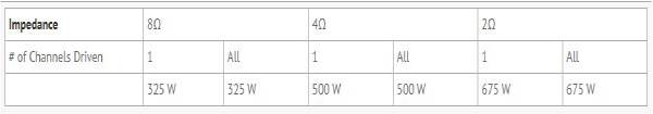 (Per channel, continuous RMS, 20 Hz to 20 kHz, <0.1% THD, one or all channels driven.)