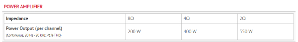 | Power Bandwidth (-3 dB at 200 W into 8 ohms) | 80 kHz |