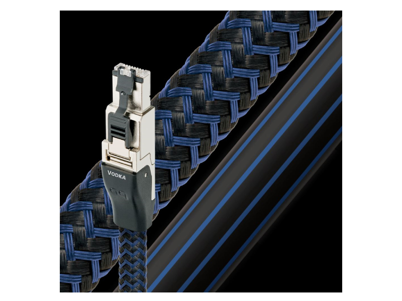RJ/E Vodka prepared Cat 7 Ethernet cables use Solid 10% Silver conductors, which completely eliminate strand interaction, one of the biggest sources of distortion in cables, for clearer, more dynamic and involving sound. Superior conductor metals minimize distortion by having fewer grain boundaries and less impurities (such as oxides) at those boundaries. Solid High-Density Polyethylene (PE) insulation helps maintain critical signal-pair geometry. Of course all AudioQuest Ethernet cables honor the directionality inherent in all analog and digital audio cables; arrows on the jackets indicate the direction (from source to destination) for the best audio performance.Over the past several years there's been a revolution in the way people store, distribute, and access digital media (in real time), including photos, movies, and, of course, music. No longer dependent on physical media, our media is often data that's moved from multiple devices to multiple locations. For audio applications and protocols, audio over Ethernet offers the virtues of high-speed, low time delay (latency), significant distance capability (328 feet without an active booster or repeater), and extremely low-jitter, bit-perfect communication. Who wouldn't want all of these things?