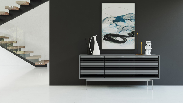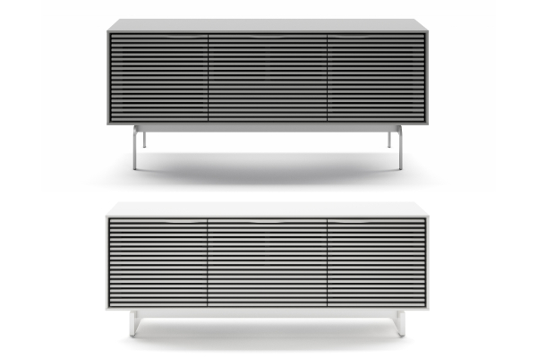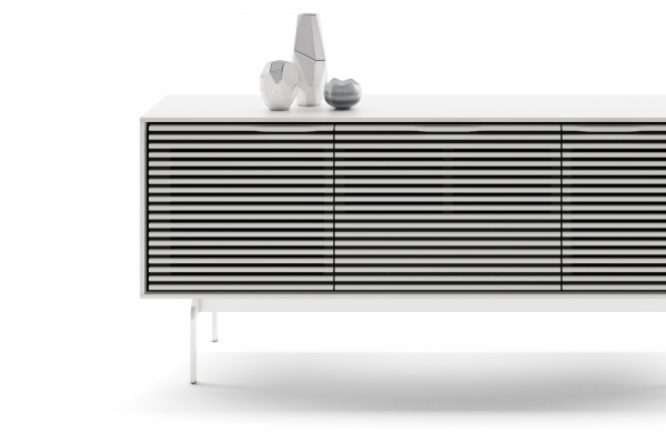 Sleek and streamlined, this sexy console collection offers multiple cabinet sizes and base options, providing the versatility to serve as full-featured media cabinets or impressive storage credenzas.