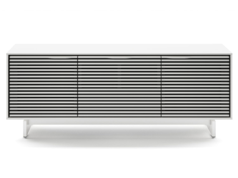 BDI Align 7477 Three Door Modern TV Stand With Media Base In Satin White - BDIAL7477MESW