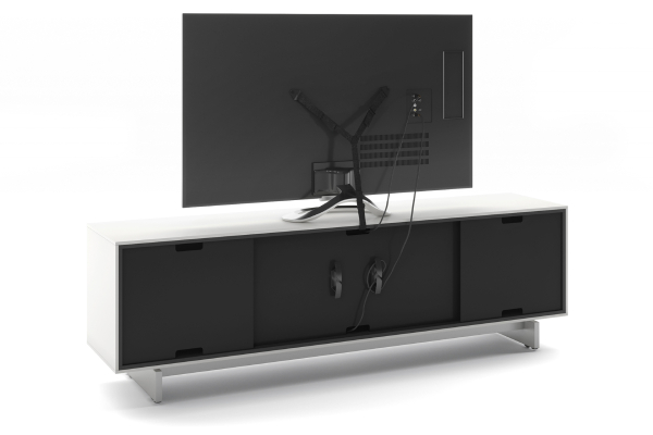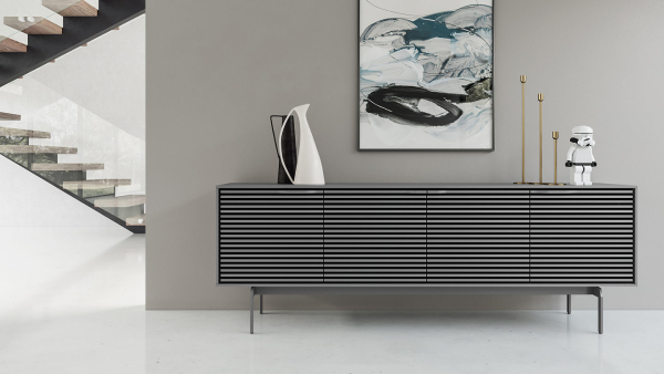 Sleek and streamlined, this sexy console collection offers multiple cabinet sizes and base options, providing the versatility to serve as full-featured media cabinets or impressive storage credenzas.