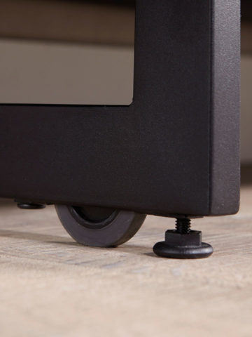 Concealed wheels make movement and access to cables a breeze. Levelers help to balance on uneven floors.