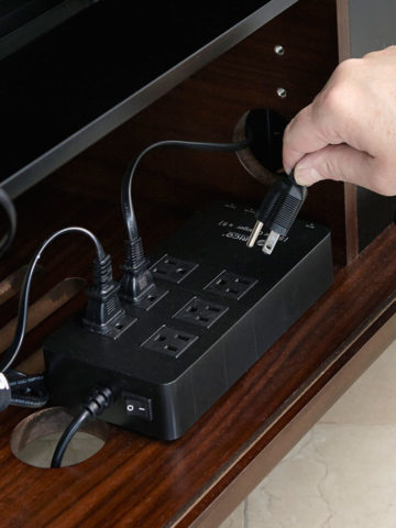 Cable cut-outs, integrated routing channels, cable straps, and removable back panels keep wires organized.