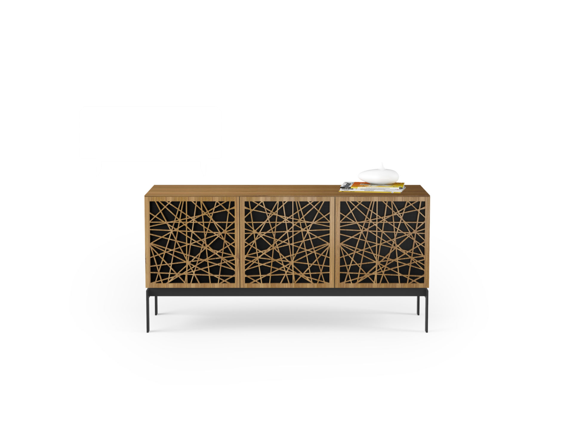 Laser-cut doors are backed with perforated steel panels, ensuring that the contents are kept out of sight, yet fully accessible by remote. With two base options, two cabinet sizes, three door patterns, and two finishes, design your perfect Elements cabinet from one of 24 possible configurations.