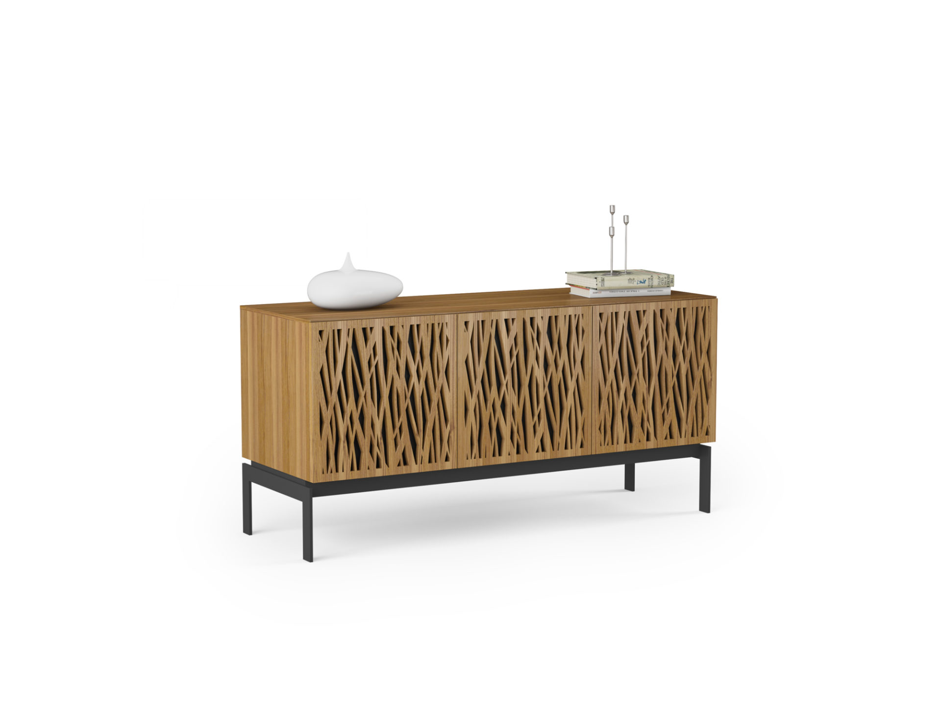 Laser-cut doors are backed with perforated steel panels, ensuring that the contents are kept out of sight, yet fully accessible by remote. With two base options, two cabinet sizes, three door patterns, and two finishes, design your perfect Elements cabinet from one of 24 possible configurations.