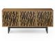 Laser-cut doors provide concealed storage while allowing sound, air, and remote control signals to easily pass through.