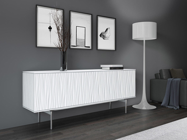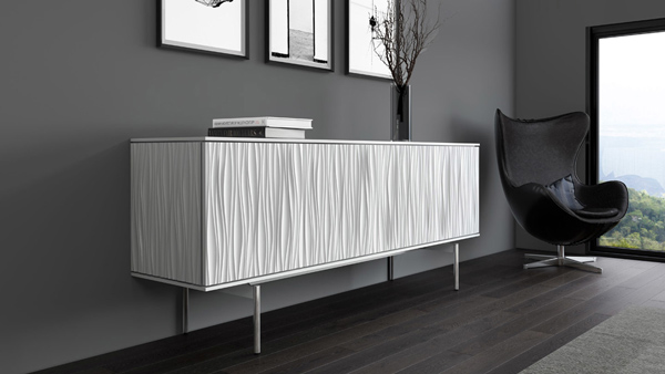 A versatile storage credenza, Tanami can also be purposed as an attractive media cabinet thanks to built-in wire management and adjustable shelves that can comfortably accommodate most AV components.