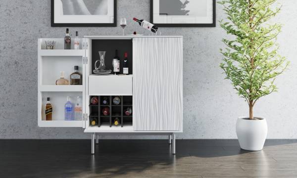 Contrasting straight lines with flowing, sculpted patterns, this stunning console and bar collection is sure to be a conversation starter and the focal point of any room.