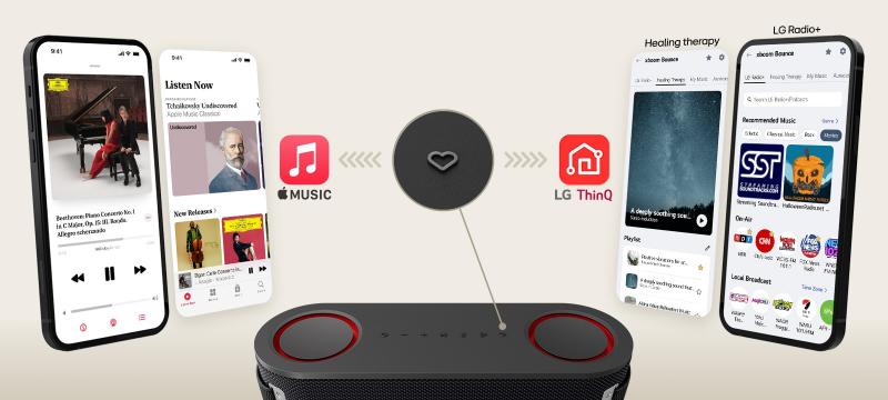 Enjoy a wide range of xboom exclusive content, personalized through LG ThinQ app. Listen to diverse genres of music on LG Radio+, or unwind with curated healing therapy content for a peaceful break from busy routine. Apple Music synchronization and local music file playback make it easy to enjoy your tunes seamlessly.