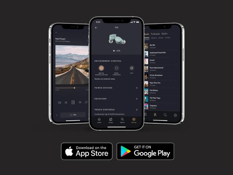 The Bowers & Wilkins Music app provides industry-first headphone music streaming, plus simple setup and control that makes Pi6 smart, intuitive and easy to use.