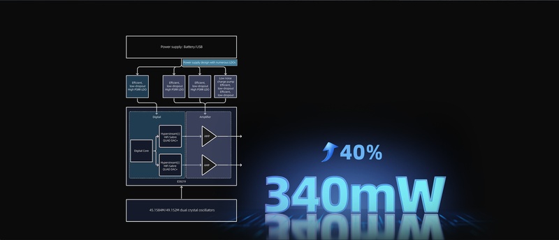 | Hardware Scheme | DAC: ES9219MQ * 2 ,USB: XMOS XU316, Bluetooth decoding: QCC5125 |