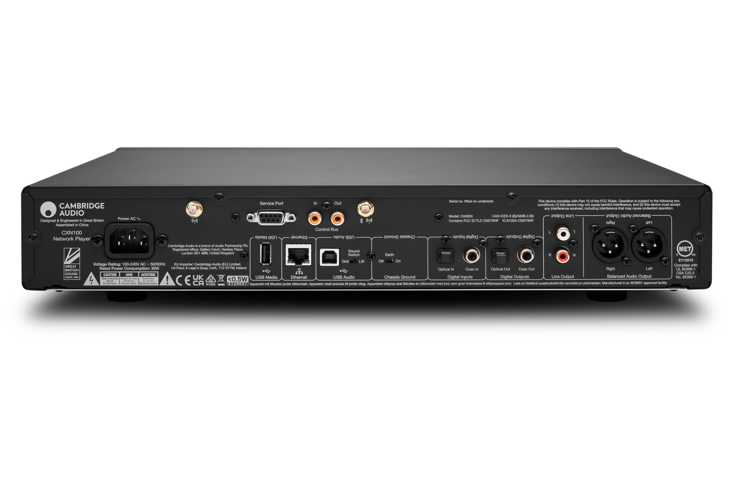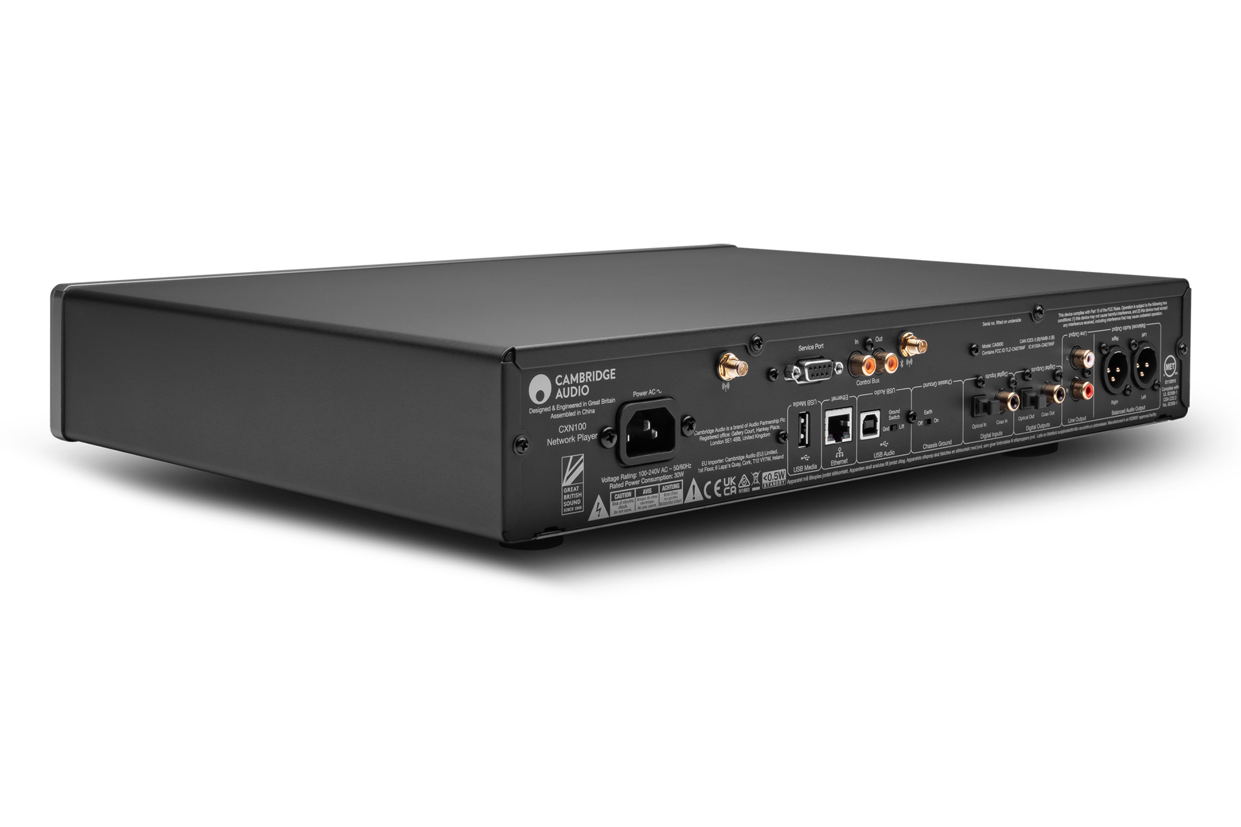 | BOX CONTENT | CXN100, mains lead, control bus cable, antenna x2, quick start guide, safety sheet, registration card |