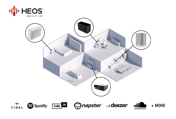 With HEOS Built-in, play the same song in every room or select a different song for each connected room — the choice is yours. With additional Denon Home speakers, sound bars, networks player or AV receivers with HEOS Built-in, easily play all your music in multiple rooms from your favorite music service or source.