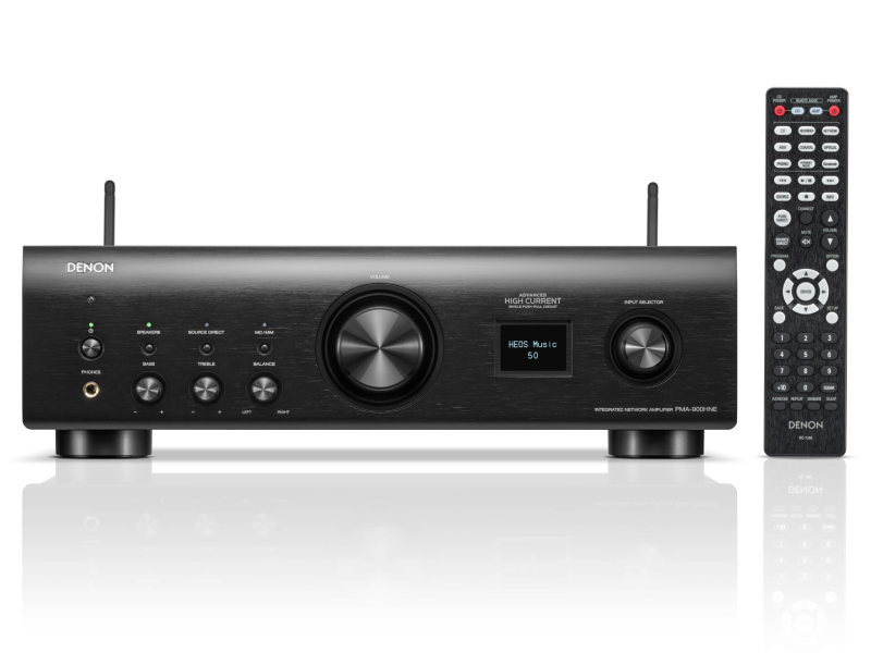 The Denon PMA-900HNE Integrated Network Amplifier, featuring Advanced High Current amplifier design, delivers superior audio from analog and digital sources. With Phono input, digital inputs for TV sound, plus network audio streaming by HEOS® Built-in, Denon PMA-900HNE upgrades your listening experience from any source.