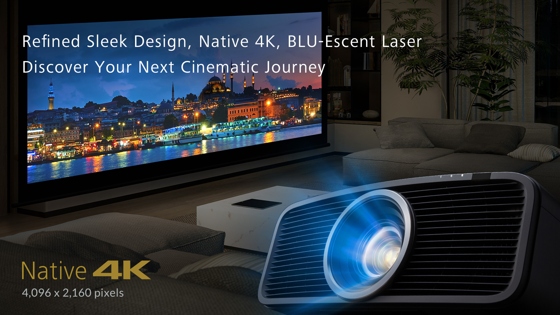 0.69-inch Native 4K D-ILA Devices (x3) / 40,000:1 native contrast / New BLU-Escent Laser 2,000-lumen / Gen2 Frame Adapt HDR with Deeper Blacks / New Picture mode “Vivid”