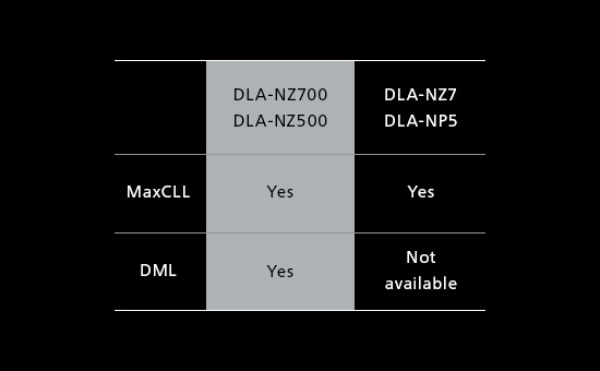 DML (Max Display Mastering Luminance) metadata, which represents the nit level of the professional monitor used to grade the movie to the director's standards, is used to set the dynamic range of the title for improved HDR tone mapping. On the DLA-NZ700/NZ500 series, both DML and MaxCLL values are used for the HDR levels.