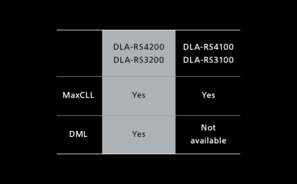 DML (Max Display Mastering Luminance) metadata, which represents the nit level of the professional monitor used to grade the movie to the director's standards, is used to set the dynamic range of the title for improved HDR tone mapping. On the DLA-RS4200/RS3200 series, both DML and MaxCLL values are used for the HDR levels.