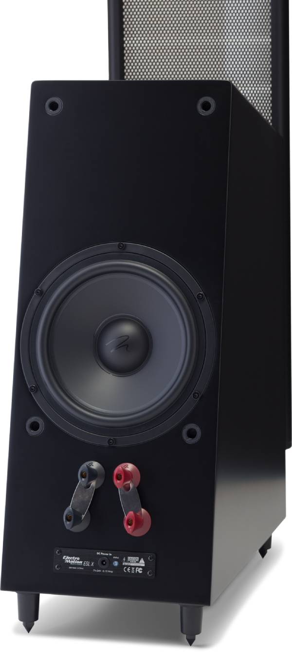 The ElectroMotion ESL X (EM-ESL X) X features a larger electrostatic transducer and dual woofers, with increased power-handling capabilities. As the flagship model of the ElectroMotion Series, the X establishes a new benchmark for price versus performance.